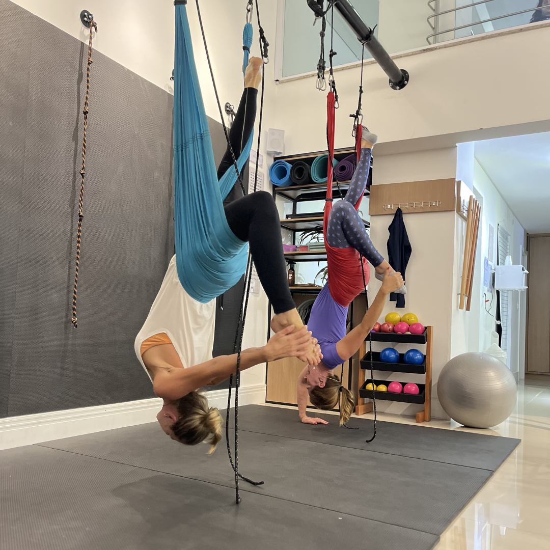 Treino com tecidos que desafia equilíbrio e estabilidade.